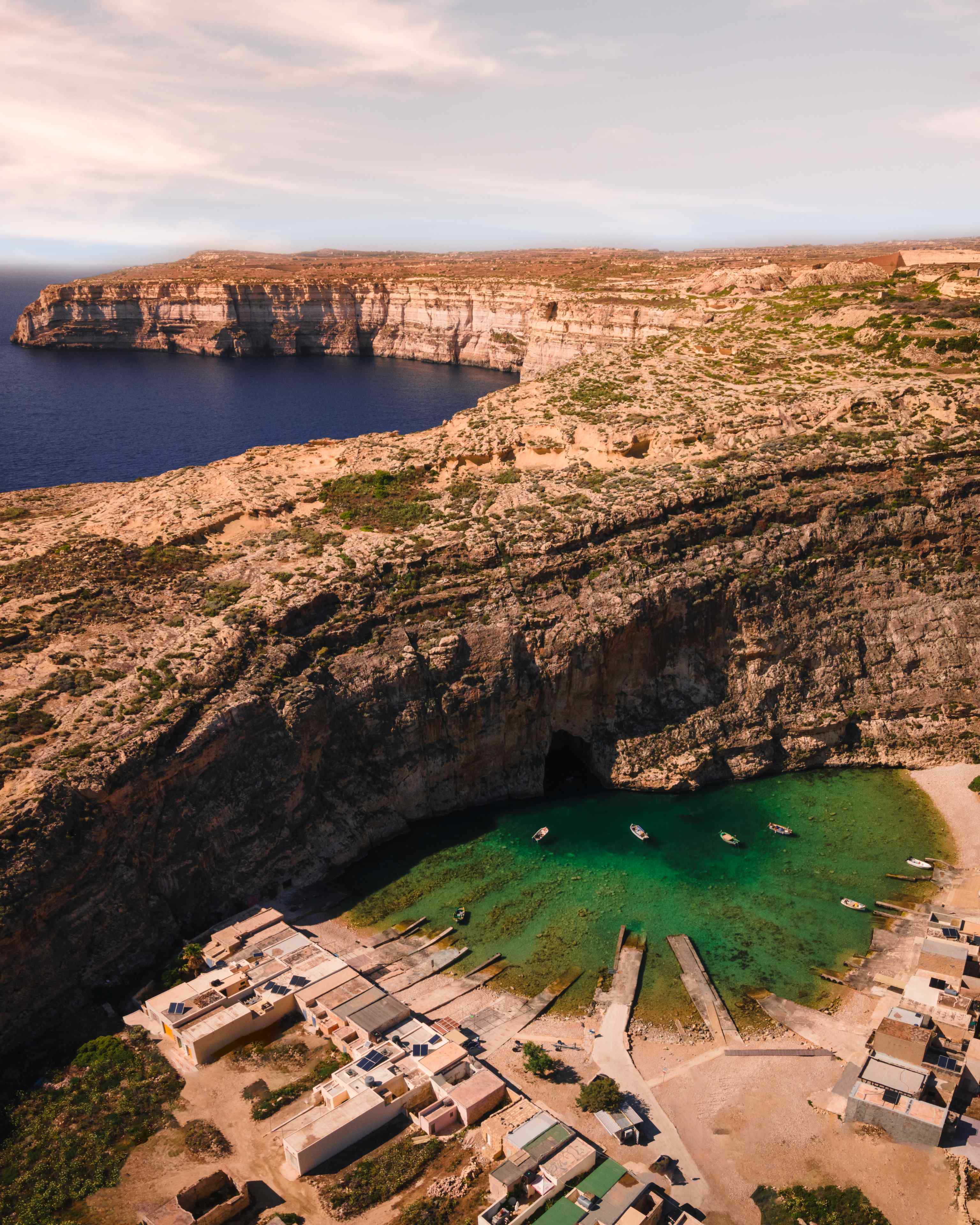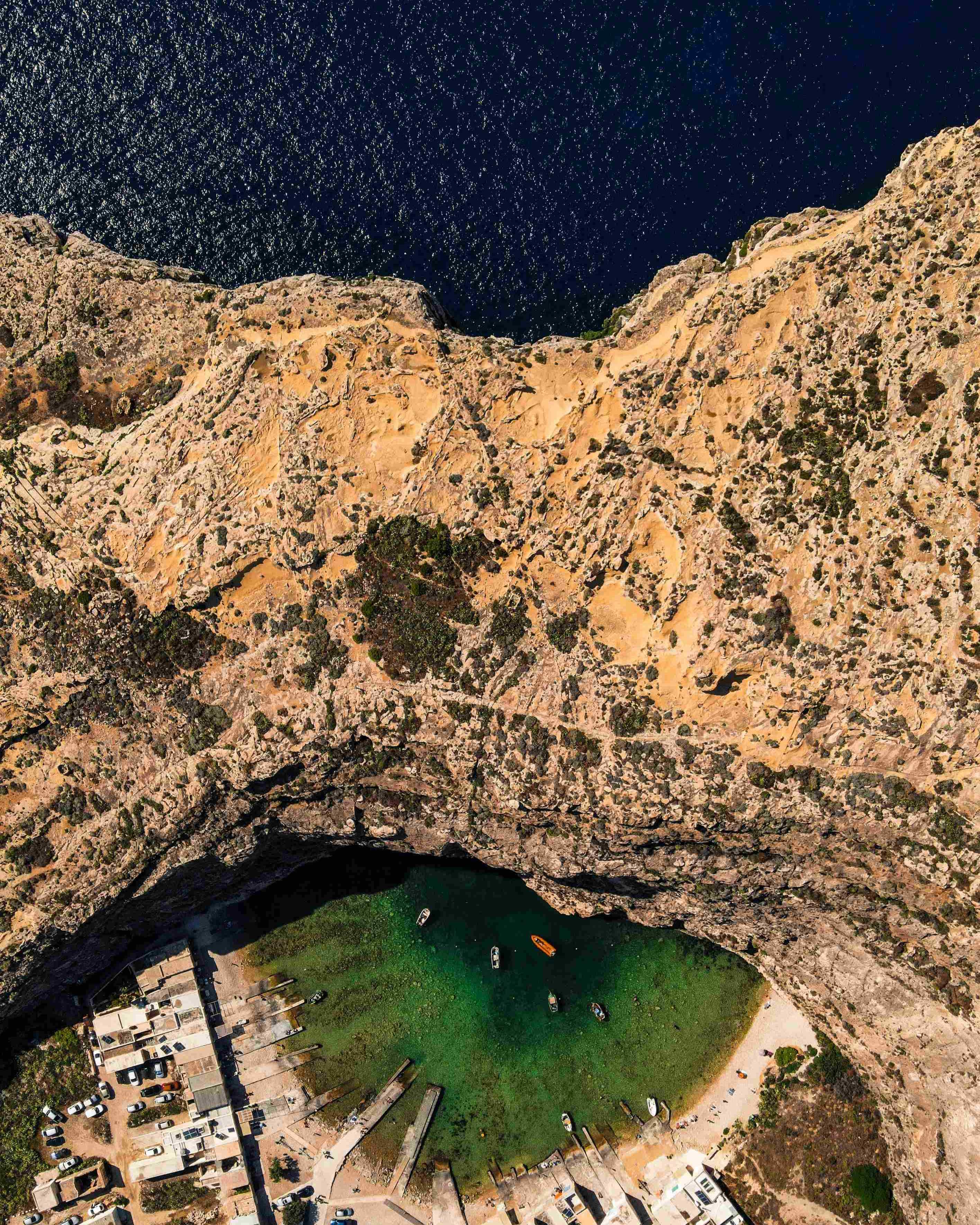 One of the fascinating features within Dwejra is the Inland Sea, a small lagoon connected to the open sea through a narrow tunnel. Local fishermen often seek shelter in this tranquil haven during the winter months. In summer, visitors can embark on boat tours through the tunnel, offering a unique perspective of the nearby cliffs and other geological marvels. Overlooking the Inland Sea is the charming St. Anne’s Chapel, the last chapel to be constructed in the Gozitan countryside during the 1960s.