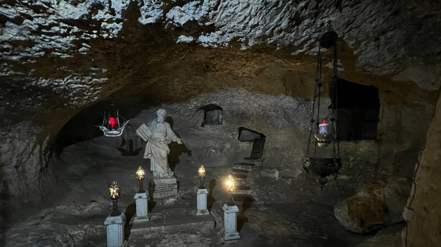 Attached to the side of St. Paul’s Basilica is the St. Publius Church in Rabat. You can enter the grotto from either the stairs leading straight down to it in the Church. Alternatively, you can go through the Wignacourt Museum on the right hand side of the church. Go down through the catacombs.