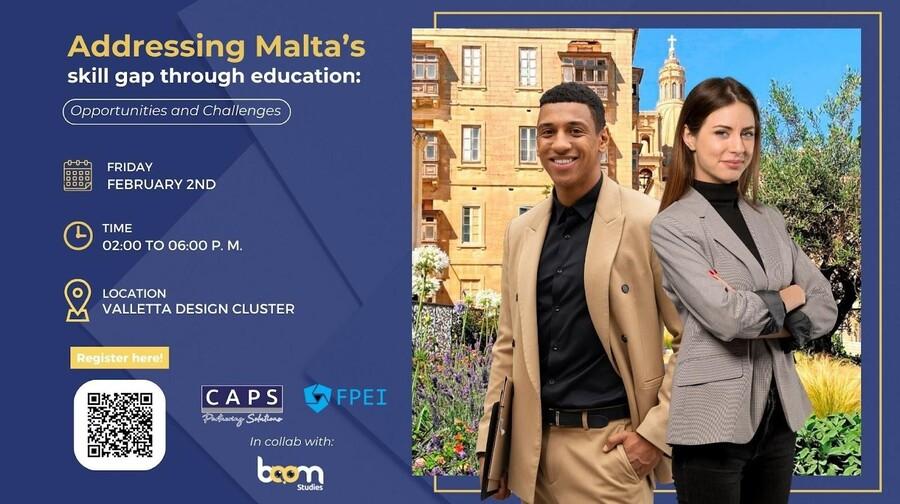 An event gathering a wide range of stakeholders, “Addressing Malta’s skill gap through education: opportunities and challenges”, will shed light on some of the key challenges and opportunities. The event will take place in the Valletta Design Cluster, organized by the Foundation for the Promotion of Entrepreneurial Initiatives and CAPS Solutions, sponsored by Boom Studies, a leading travel to study Malta-based agency.