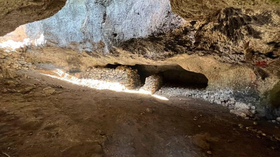 Right next to these tracks is a big cave with a series of smaller caves next to it. These were at first natural phenomena. Afterwards, however, inhabitants enlarged them. The rainwater dissolved the carbonate rock of the upper coralline limestone and led to the formation of these caves. Eventually, human beings who wanted to make use of the cave as a home or a space amended the shape of the inside of the cave to their liking.