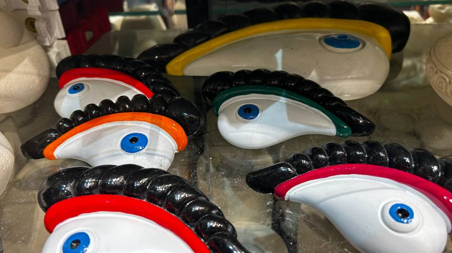 More so than the physical representation of the evil eye itself, what is strongly present in Naples is the counter-talisman of the little horn, the ‘cornicello’. It is literally everywhere, manifesting itself in all kinds of objects. From keychains, to fridge magnets, to earrings, necklaces, statues, tattoos, and so on.
